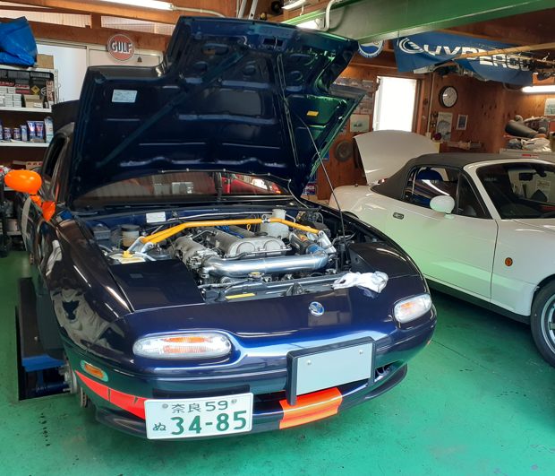 朝イチで来店は奈良よりNA8、いつも走行会に参加してくれるTさんです。今回は1泊2日での作業。