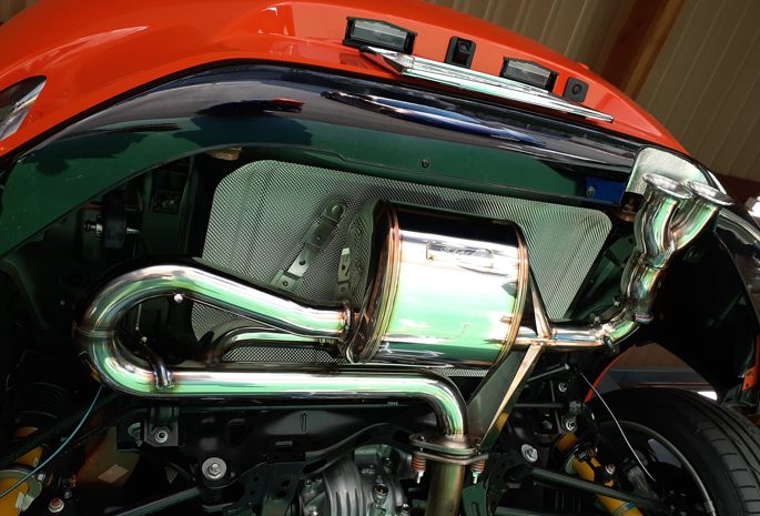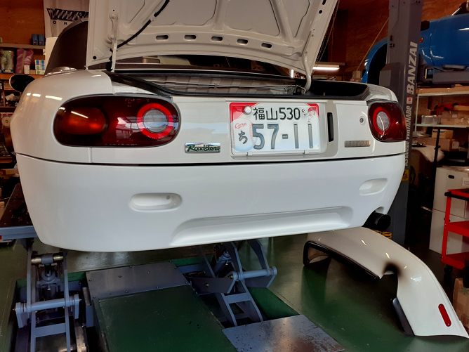 スイミングから帰ったころにアイスタさんより送られてきたNBが到着。積載車から降ろすとき、なんかウルサイなぁ~ どんなマフラー付いてるんだろ?と思ってリフトアップしたら……