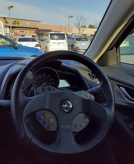 石井さんのCX3、変なハンドルが付いてます(笑) 「パドルシフトも付いてるんだぜぇ~」とのこと。
