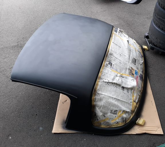 旧ガレージよりホコリだらけのハードトップを出してきました。拭いても拭いてもキタナイので塗りました(笑)