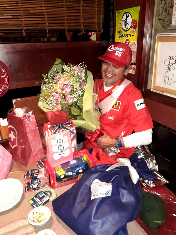 テラおじさんの還暦のお祝いです。思い返せば50歳の頃から「60歳までお誕生日会するぞ!」と言い続けて毎年お誕生日会という飲み会をしてきました(笑) そしてついに60歳を迎えたというわけ。