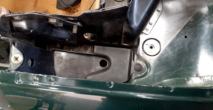 これ、分かるかな? ショップ連中にはわかるかと。リテーナーの向きが逆なんです(笑) よくこれでウェザストリップ付いたな(笑) かなり無理やりだと思われ……NA骨にNBの幌生地を張る細工は何もしてないし……作業履歴が残っていて……見ると……ディーラーでした。ディーラーでは幌の張替えはしないと思います、外注か、骨ごとのアッシー交換。なので良く作業したなとは思いますが……外注なのかわかりませんが経験無いんだろうね、作業した人は。残念な仕上がりでした。