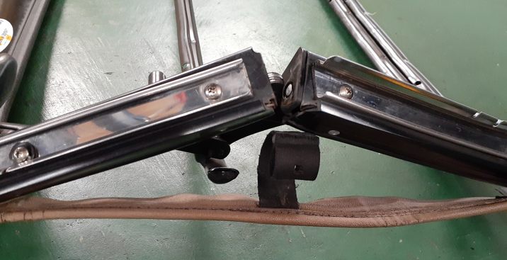 骨はオリジナルです、特に錆も無いので使えます。リンク部分は注油して動きを確認。