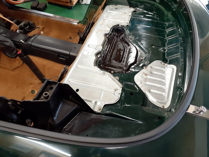 フラットボトム……というより座面ですね(笑) オイルパンが低くて……ボコボコじゃないか(笑) 大丈夫かよ! ドライサンプキットとかあるらしく、イギリスって凄いね。