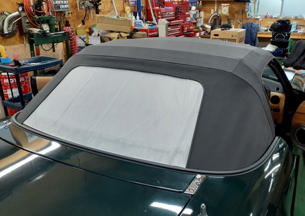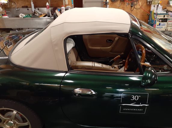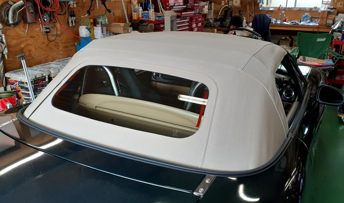 NBの幌交換は仕上がりました。ベージュ色なので上品ですね!