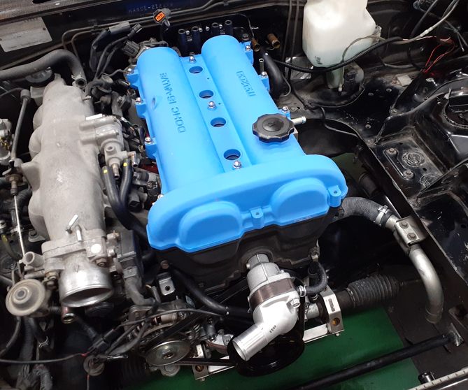 ついにエンジンルームは完成!長かった……スペシャルエキマニですがタワーバー付きましたね!