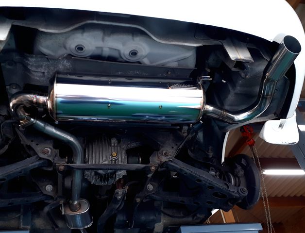 2台同時入庫です!白いのは某店長、赤いのはその店長のお客さん。店長は金曜日に電話してきて「サクラムマフラー欲しい」と言い、その日に手配、運良く在庫あったのですぐに送ってもらいました、で、土曜日の午後に到着。「マフラー来たよ!」と伝え本日、交換です。マッハな対応でしょ(微笑)