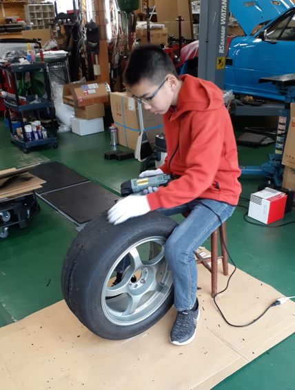 興味津々な長男坊、座らせてみます。彼は早くクルマの免許が欲しいんですよね~ あと5年……ま、すぐだよ。