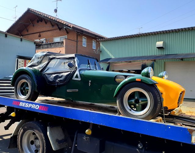 セブンを載せてみました! リフトのアームを全部伸ばしたの初めてだ~ それだけクルマが小さいということ。