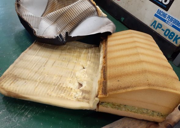べニアと安っぽいスポンジと表皮のこのシート……今、15万くらいで売ってます。アリエンなぁ、どんだけ儲けるんよ(笑) セブンに限らずガイシャのパーツってボッタくりが多いよね(笑) まぁ車両価格自体がボッタくりだと思うけど!