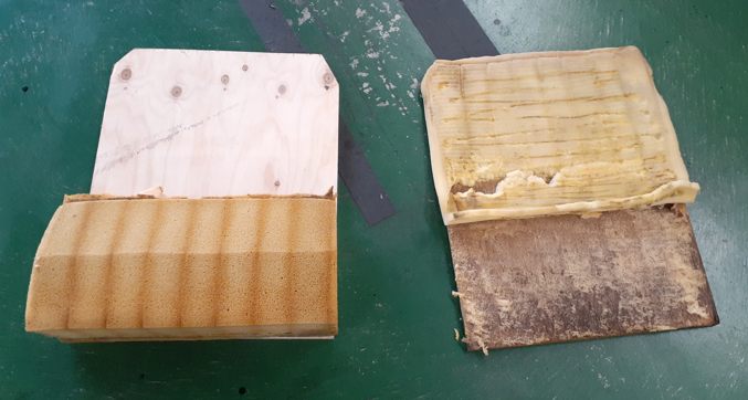 撤去した図……過去に張替えされていて……少し水が入ってますね。