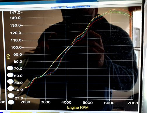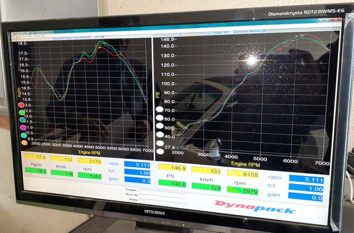 ダイナパックの数字はパワー146馬力、トルク18キロでした。一般的な表示では×1.15がフツーかな?換算すればパワー167馬力、トルクは20キロですね。まぁそんな感じかな。煮詰めてどこまで上がるかな?それとも一気にカム替えるか? いやいや今シーズンはこれを煮詰めよう……セブンも来るしさ……(笑)