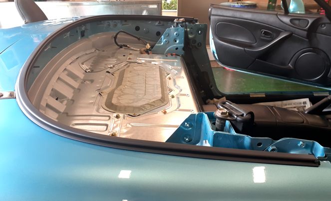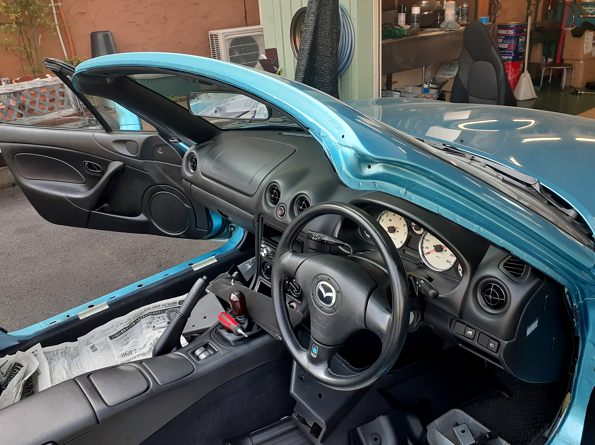 刷毛塗りで何が大変かと言えば塗る前の下準備です。外せる部品は外す……そしてマスキング。ロドスタの場合、屋根も無いし、ドアも2枚、ピラーも無いので塗る場所が少ないんです、なので安価な設定。