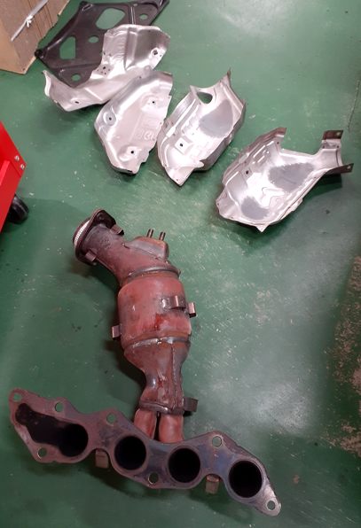 上の4つのカバーはエキマニの周囲に装着されているモノ。知恵の輪みたいに外しましたよ……