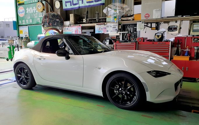 昨日、サスキットを組んだNDを持ち込んでいたんです、アライメント調整をして頂くために。オーナーさんに引き渡して完了。