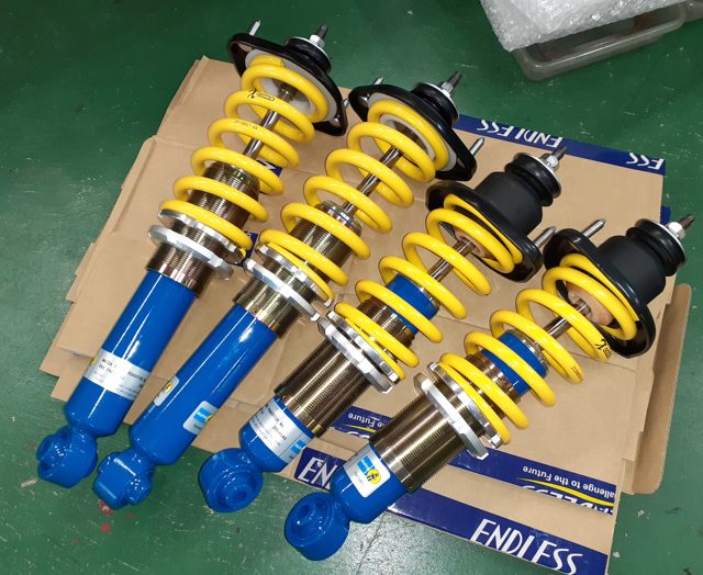減衰調整無しのシンプルなモデル。車高短仕様(笑)なのでリアはハイアッパーを導入。狙い通りの車高になるかな?なるはず!