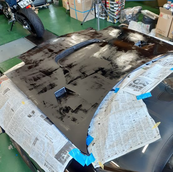 何するかと言えば……以前刷毛塗りしたボンネットの再刷毛塗り(笑)