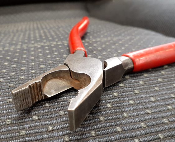 フツーのペンチ、確かクニペックスかな? 摘まめないなぁ~と思ったら潰れてました(笑) このサイズが使いやすくてコレばっかり使ったからかなぁ~ 15年くらいは使ったと思うけど。