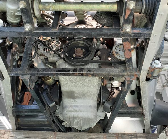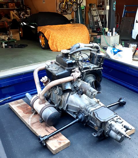 さて近所のテラオジサンより電話、チンクのエンジン降ろしたので運びたい……と