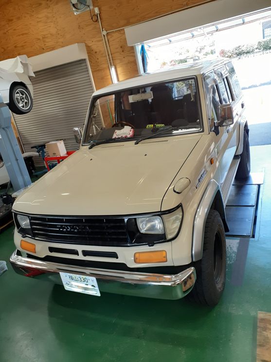 スイミングスクールの「男前な女子コーチ」のプラドです。ガレージに入れると圧迫感あるな~