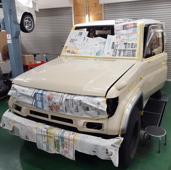どうでしょう? なかなか良い感じじゃない。ルーフは塗っていません、助かった(笑) オーバーフェンダはブラックで。なかなか男前な車になりましたね、オーナーは女子ですが(笑)