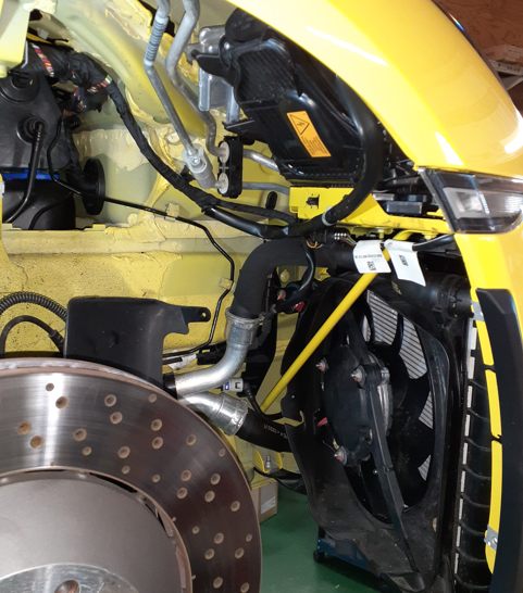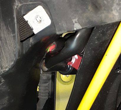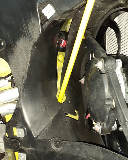 交換したであろうファンのソケットのハーネスがインナーフェンダーの中に納まらずにはみ出ていました。これのおかげでインナーフェンダーがタイヤ方向に押されていたのでしょう。