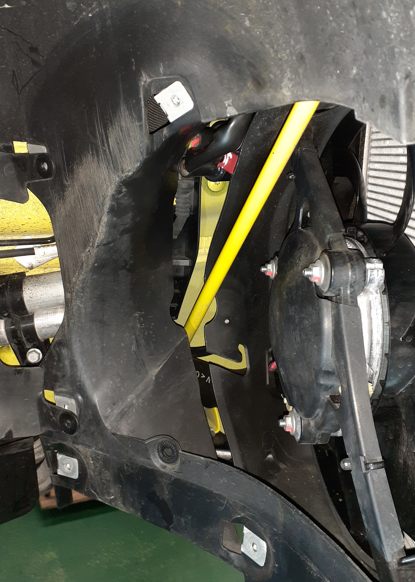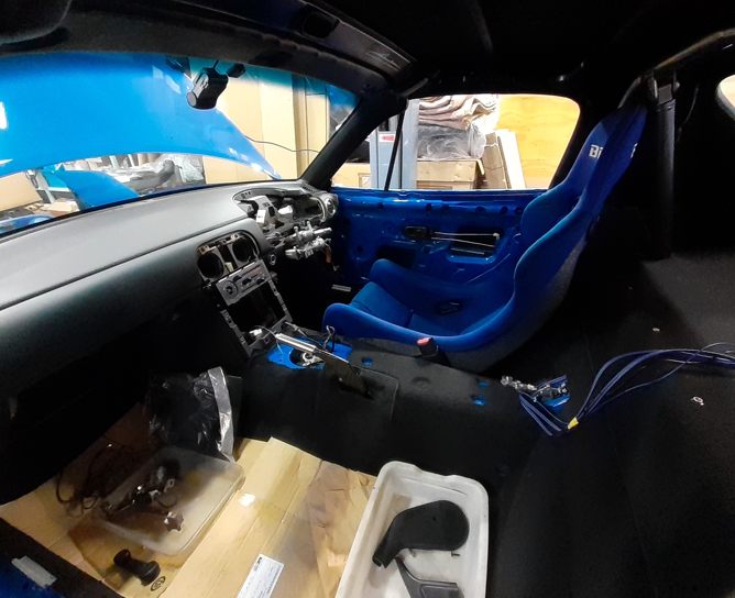 GTヨンではずっと3点式のシートベルトだけでした。それだとフルバケでも腰が安定しないんですよね。なので追加で腰ベルトを。アンカーは右は純正の根本を利用。左はシートレールにアンカーを取り付け。ボディへの加工は無し。