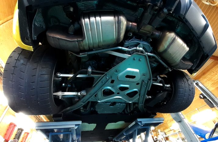 ハンドルを切るとインナーフェンダーにタイヤが当たる音がするGTヨン。時間があったのでリフトアップ。