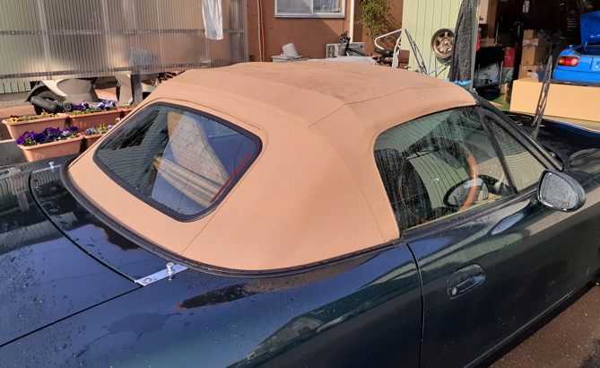 幌はピカピカです、まだそんなに時間経ってないでしょ。なんとNB用の純正ビニールですよ!デットストック品です。