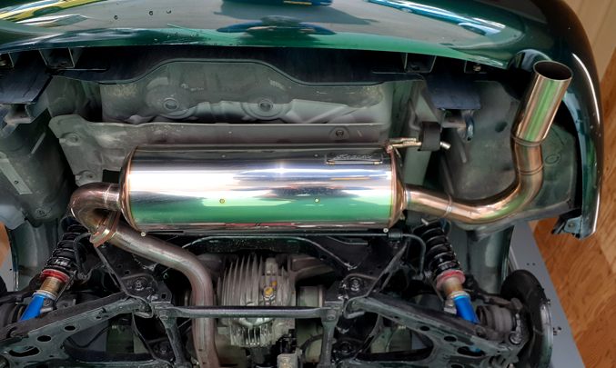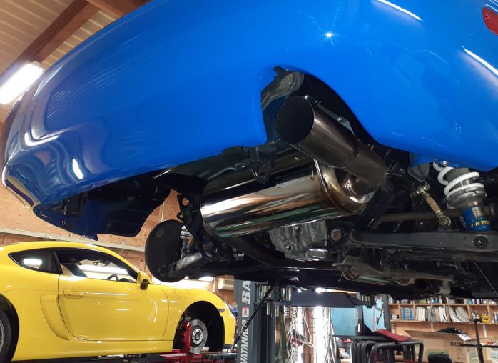中間パイプも交換済み、奥に見える6速MTも数年前に新品に交換済みだったりします(微笑)