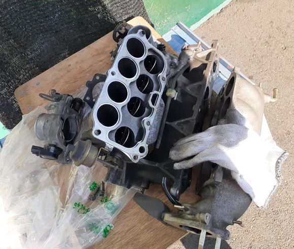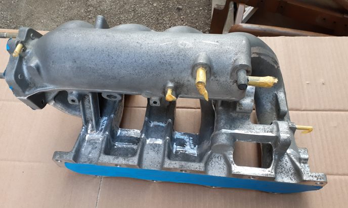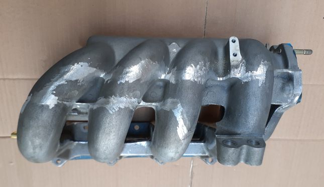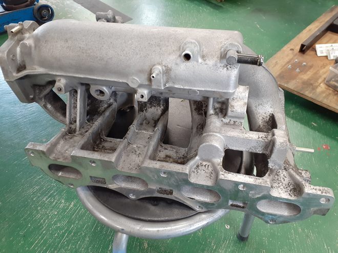 しばらくシングルスロットルで乗るつもりなのでインマニを探す(笑) 元々、白号に付いていたはずなのにどこ行った?(汗) ガレージの倉庫スペースを漁ってようやく見つけました、メチャ汚い奴を……