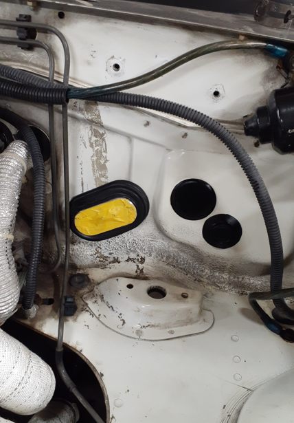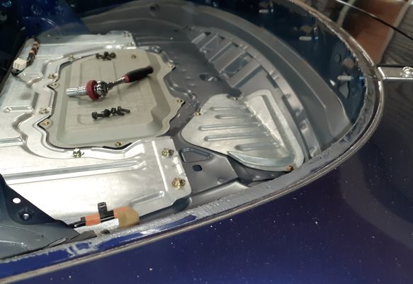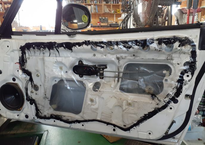 ベルトラインモールもAピラーのモールも新品に交換しています。とりあえず張って一晩寝かせます。翌日、後ろのプレートを増し締めしてカーペットを装着。フロントのキャッチは最長にしていますが馴染みが出れば少し短くします。(新品時は無理だと思います)