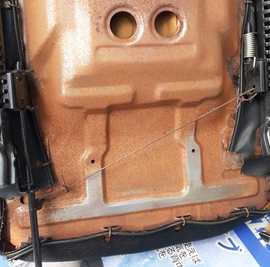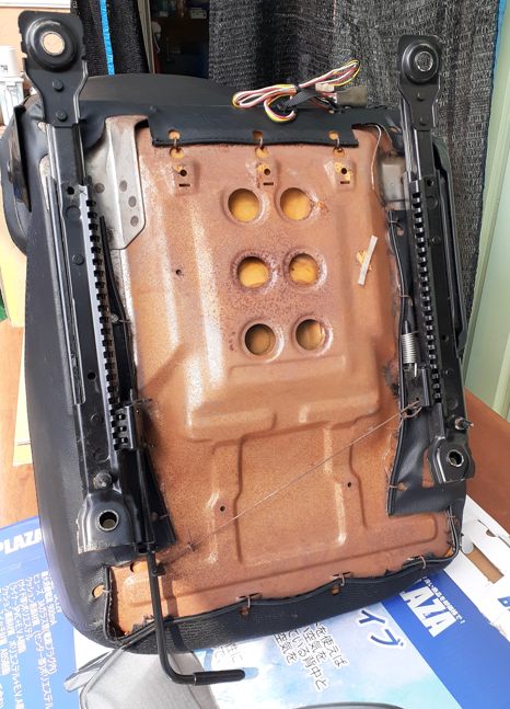 「バスプラス」を取り付けようとシートの裏を見ると……満遍なく錆びてますね!さすがNA6、時代を感じます。