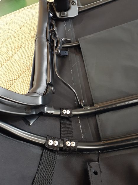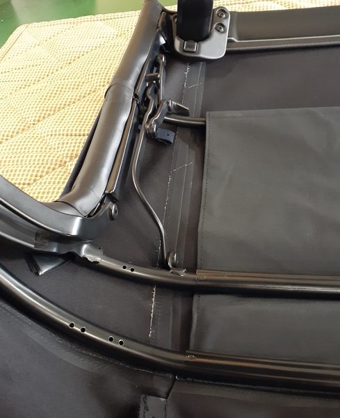 幌交換したのに三角窓の上の辺りから水が入る……その時がキャッチの長さを変える時です。馴染みが出て少し緩くなっているはずなので。この時点で再調整すれば完成です。雨の日に乗らない人は当分気が付かないポイントです(笑) ウチに来ることがあれば調整しますので。
