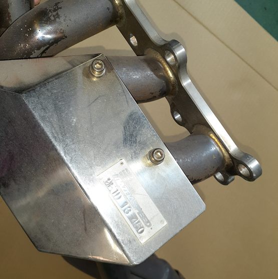 わかります?2の部分が横並びなんです。量産したスペシャルエキマニは縦に並んでいます。横並びだとクリアランスが無さすぎて……レイアウトとしては理想的だったんですけどね。縦になった量産品は長さを確保するために上にうねったんですよ!見た目はその方がカッコイイですけどね。
