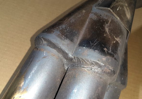 見えるかな?右のパイプの溶接の端にクラックがあります。ここは修理した方が良いでしょう、修理できる方向け。