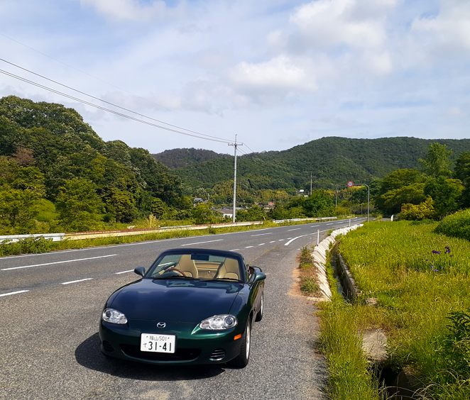 朝は晴れていたのでオープンに。なんて気持ちが良いんでしょう~ あ~懐かしい感じ。ロールバーも無いフツーのロドスタ。シートもノーマルなのでドアに肘が違和感無く乗ります。