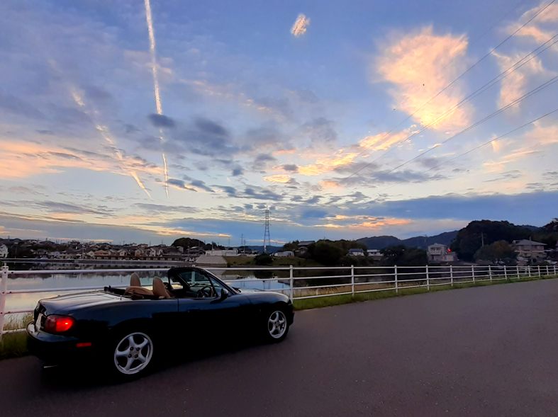 夜はスイミング、今日は「マイNB号」で行きましたよ。19時過ぎに家を出ましたがまだ明るいので屋根を開けて。夕暮れの中、オープンでの走行は超キモチイイですよ!今更ですが~(笑)