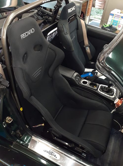 純正シートなら2個付けた方が良いかな?1個じゃちょっと弱いと思います。当初は運転席に1つ、助手席に1つかな~と思っていましたが皆さん運転席に2つを選びます。そうなんです、ロドスタは実質1人乗りなんです(笑)