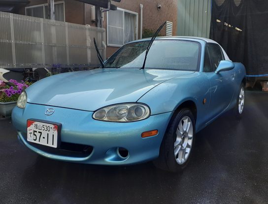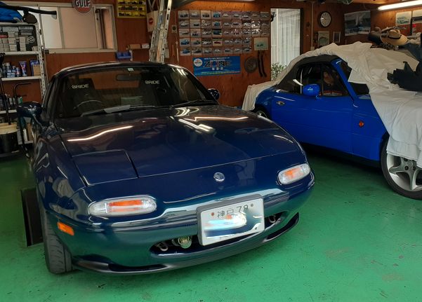幌交換したNAですが幌はNB用のダークブルーです。ガレージの外で見るとこんな感じ。