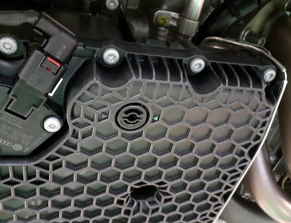 オイルパンですが樹脂製!マジか? で、ドレンプラグも樹脂製。これは再利用できるのか? なんかイヤ~な予感がしてポルシェディーラーに電話。メカの人に聞いて見ると……「再利用不可です、再利用すると多分漏れます」と。嫌な予感的中。来週の週末まで乗らないと言うのでこのまま放置、ドレンプラグが届くのを待ちます。ディーラーより取り寄せることにしたので。