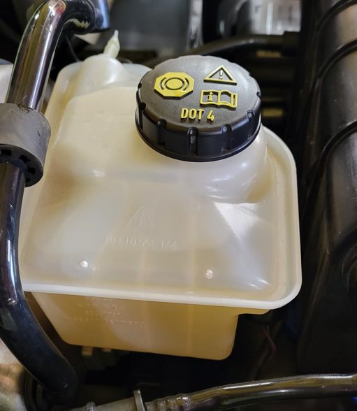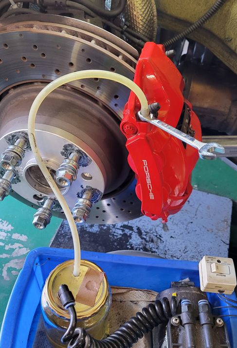 フルードを入れるタンクですがそもそもデカい。そして内部には仕切り板がいくつもあります。サーキット走行中の偏りを防ぐ意味だと思われ。それとキャップにはDOT4の刻印が。当店では昔からDOT4のフルードしか使っていません。フツーに走るだけならDOT3で十分ですしフツーのクルマ屋さんではDOT4なんて扱っていないと思います。最低限DOT4を使えと言うポルシェは凄いよね。