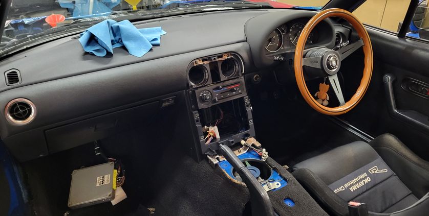 NA6にエアコン取付作業中です。新品は気持ち良いですね!