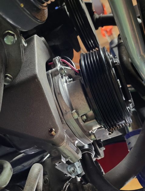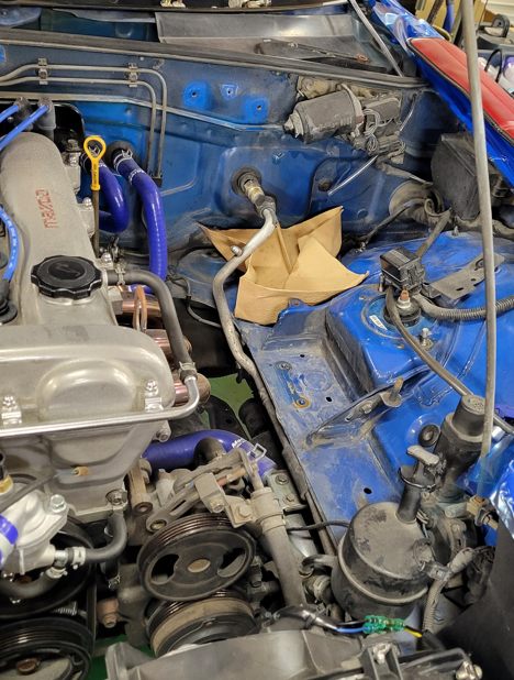 コンプレッサはND用です。これを使うために石井自動車さんのキットを導入しています。NA6のキットもありますがいわゆるレトロフィット化になるので……どうせならフルNA8化のほうが良いと思います。今回の作業もNA6のシステムは全部撤去してNA8化しています。