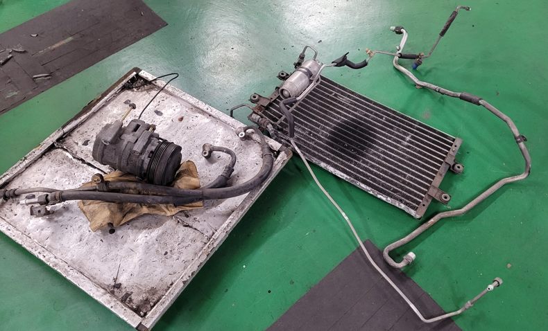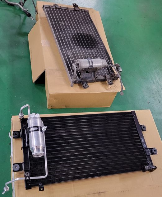実は今、フル・NA8化できる材料を1台分在庫しています。コンプレッサはNA8のリビルト品でそれ以外の部品は全て新品です。NA6の方や、NA8の方でエアコン不調の方、今なら割と早く作業できますよ。梅雨が来る前にどうでしょう?