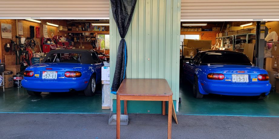 今、2台のNAが入庫中。そういえばどちらも女性オーナーです。今、ウチに来ている女性オーナーはこの2人くらいじゃないかなぁ? なんという偶然(笑)