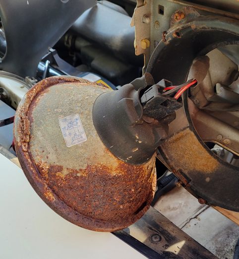 どうやったらこんなに錆びるの?(笑) とりあえずバルブだけ交換したけど……穴が空いたらライトも交換しましょうか(笑)