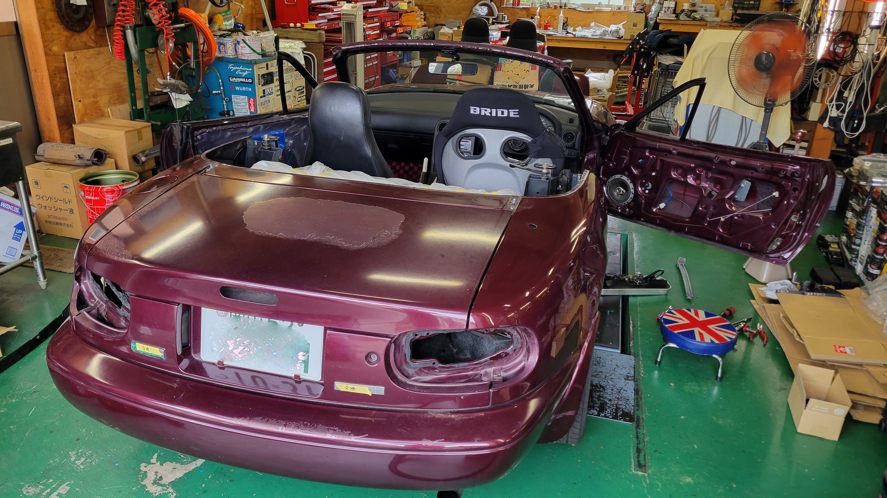 全塗装に出すNA8の準備中……今回、色を変えます……ソウルレッドに! いや~止めたんですよ、似合う気がしないので(笑) でもオーナーさんは「やってみたい」と。と言うことで乞うご期待! どうなっても知らんぞ……(笑)