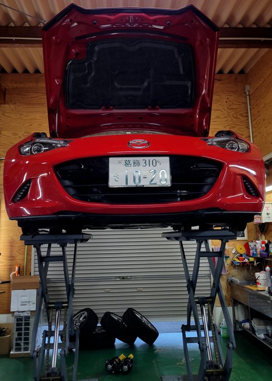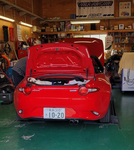長らくNBに乗っていてウチでメンテを。RFの出物があって乗り換えたと。まだ2万キロ台のこのクルマ、足はもちろん生きてる。朝、助手席に乗ってきたガンちゃんのNDは「なんか足がイマイチだなぁ」と感じていましたが確信しました、もう賞味期限は過ぎてるよ(笑) 10万キロ近かったっけ?
