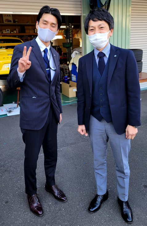右側は今までの福山営業所の所長。そして左側でピースサインをしているのが新しく所長になったオトコ。14年前、マツダ部販に入社してウチの担当になったツチヤ君。ウチがまだセカンドガレージの時代でした。